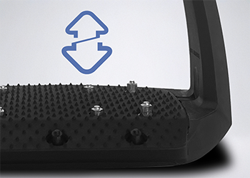 The single-branch technology, combined with Elastollan® overmolding, reduces the effort on each stirrup by threefold, relieving the rider's joints and the horse's back.