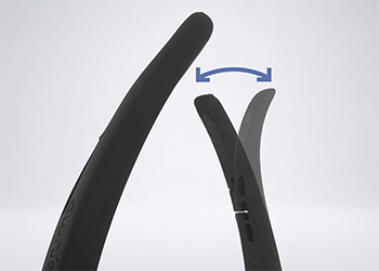 The flexible Elastollan® outer branch of the SOFT’UP PRO+ CRYSTAL is designed to facilitate foot release in case of a fall and can open under foot pressure.